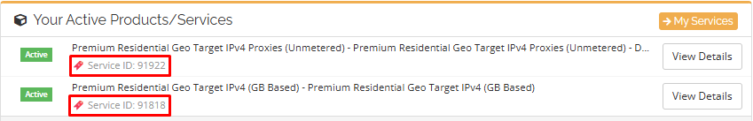 • Your Service ID (Package ID) helps you manage your services efficiently and allows the support team to identify each service accurately, especially if you have multiple plans.
