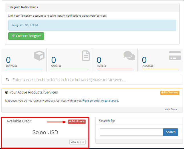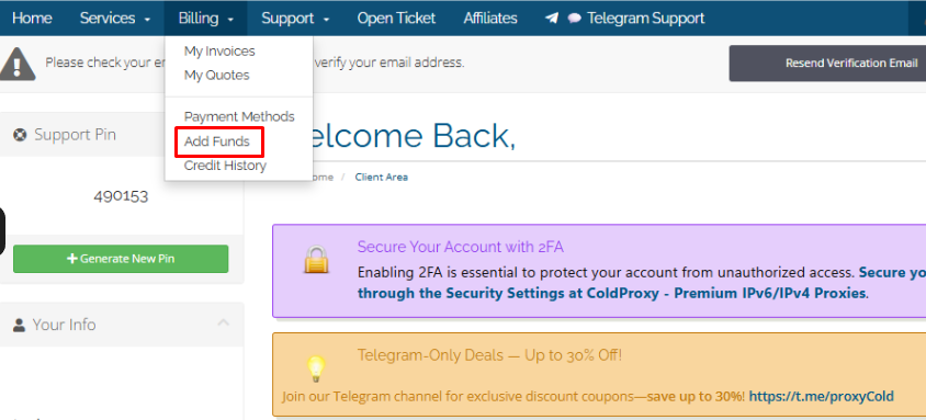 You can also navigate to the Add Funds page from the billing section in your client area.