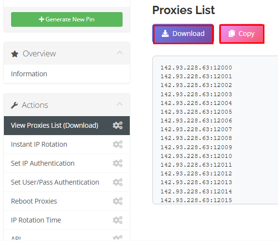 You can either click Download to get the proxy list, or choose Copy to paste the proxies directly where needed.