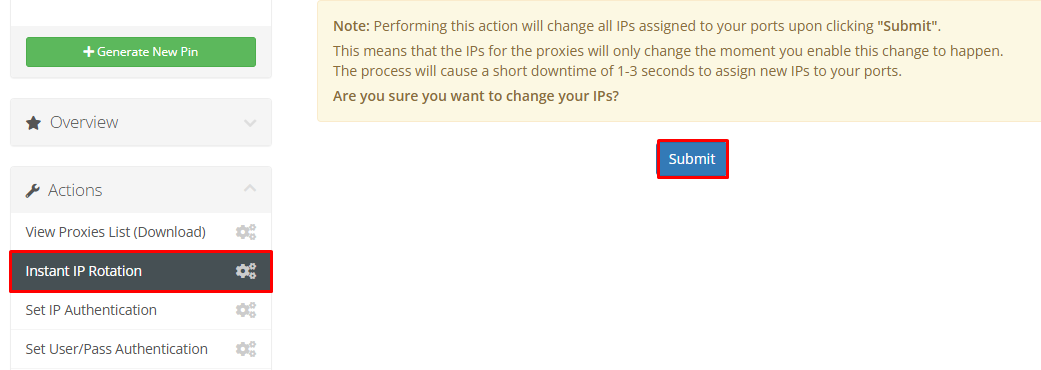 3- Instant IP Rotation happens only when you manually request a change for the proxies' IPs to change.