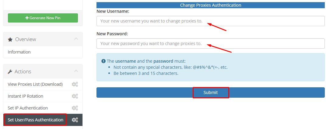 There are 2 authentication options, one of which is the IP authentication for the device you want to authenticate the proxies on.