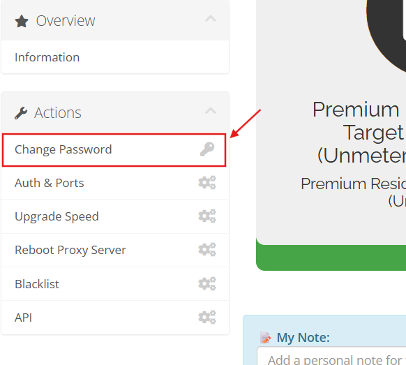 You can change your proxy password by clicking the Change Password option, as shown in the image: